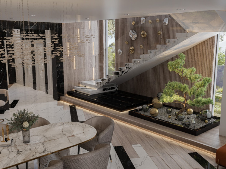 We created a balanced lighting scheme blending natural light with modern fixtures.