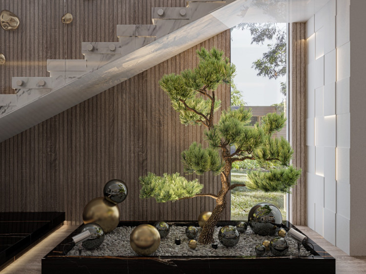 Space was smartly utilized with an indoor greenery corner and a stylish built-in bookshelf.