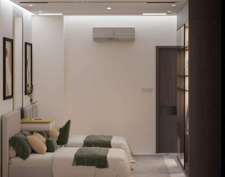 The design of this kids room in Maadi blends practicality comfort and modern aesthetics creating a balanced interior that suits the needs of two children while maintaining a spacious and organized feel the room features soft calming colors with playful decorative touches that reflect the joyful spirit of childhood the beds are arranged smartly to allow easy movement throughout the space with dedicated zones for studying and playing ensuring a complete and engaging environment for the children innovative storage units were integrated to maintain order and support daily routines special attention was given to lighting to create a warm and cozy atmosphere that enhances comfort the modern design focuses on color harmony functional layout and high quality interior finishing that reflects a contemporary style suitable for families in Maadi who value detail and smart space use the room was designed by a professional interior and finishing company specialized in space optimization and delivering elegant solutions for compact areas