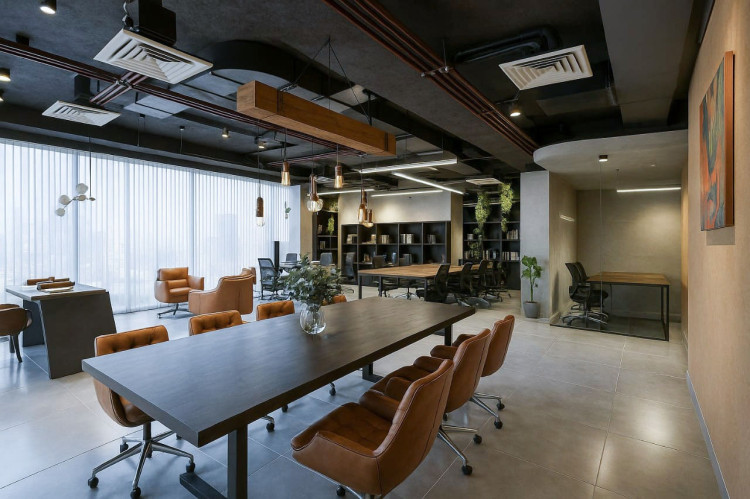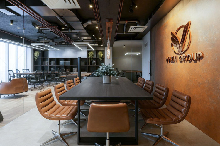 Modern office interior design has become a key element for business success because the workspace atmosphere directly affects productivity comfort and the overall work experience The project shown in the images presents a contemporary office design that blends industrial style with warm elegant materials creating a functional and visually impressive environment