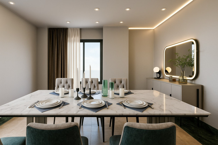 The reception design focuses on open spaces with a modern layout that enhances natural lighting and visual flow The furniture distribution is carefully planned to create a welcoming atmosphere suitable for daily living and elegant hosting making the reception area the heart of the apartment