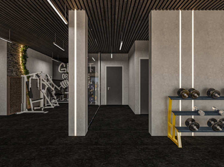 اعتمد التصميم على توزيع منطقي للمناطق المختلفة داخل الجيم من منطقة الكارديو لمنطقة الأوزان الحرة مرورا بغرف التدريب الشخصي وغرف اليوغا والساونا بحيث يتم استغلال كل متر بطريقة تخدم التجربة البصرية والوظيفية في نفس الوقت استخدام الألوان المحايدة مع لمسات معدنية أضفى إحساس بالفخامة والهدوء بما يتناسب مع أجواء دبي الراقية